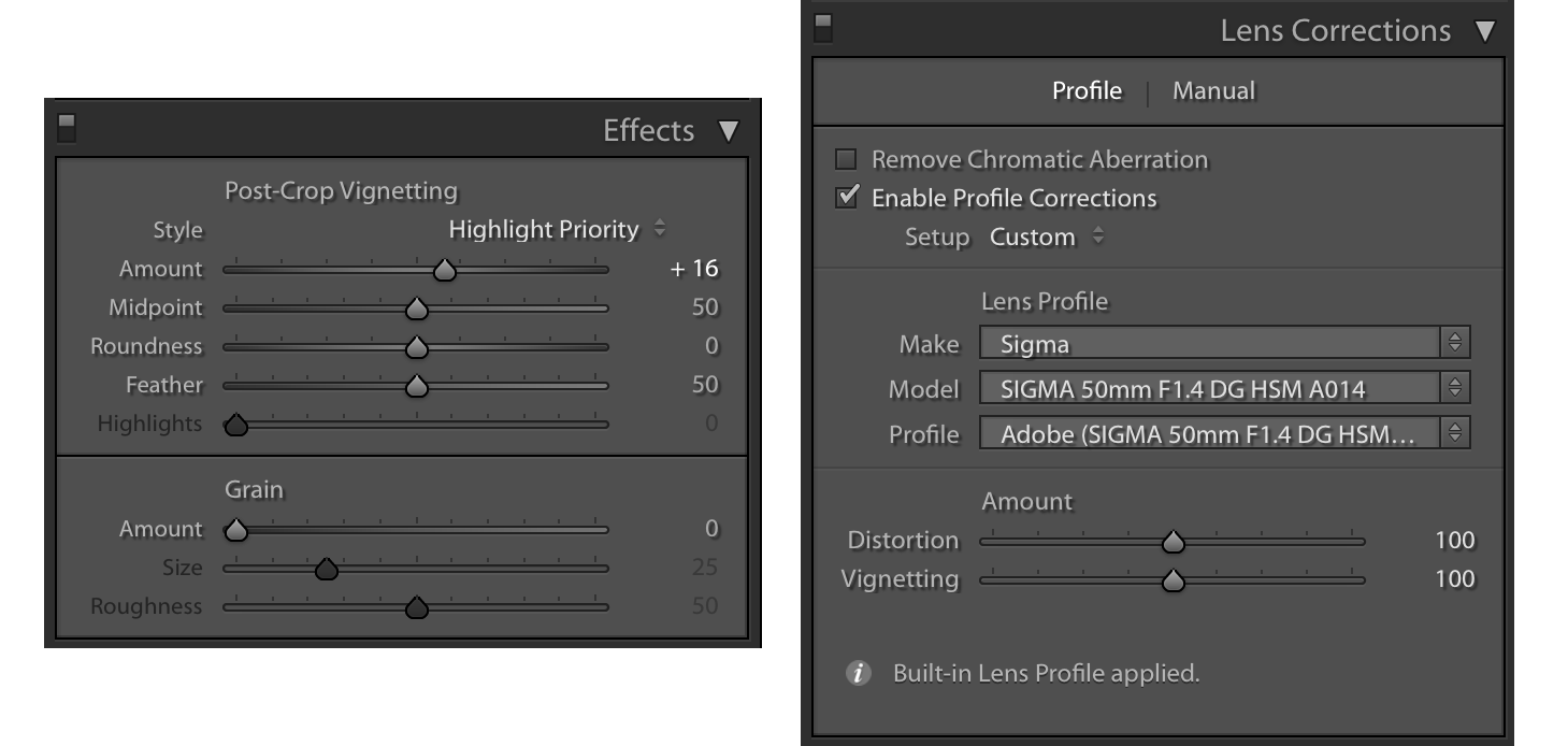 Van még egy módja az eltűntetésének utólag. Ha a fent említett szoftverek bármelyikén belül a lencsekorrekciónál kiválasztod, hogy milyen objektívvel készült a fotó, akkor automatikusan eltűnteti helyetted a vignettálást és a torzítást (párnás vagy hordós) is egyben.